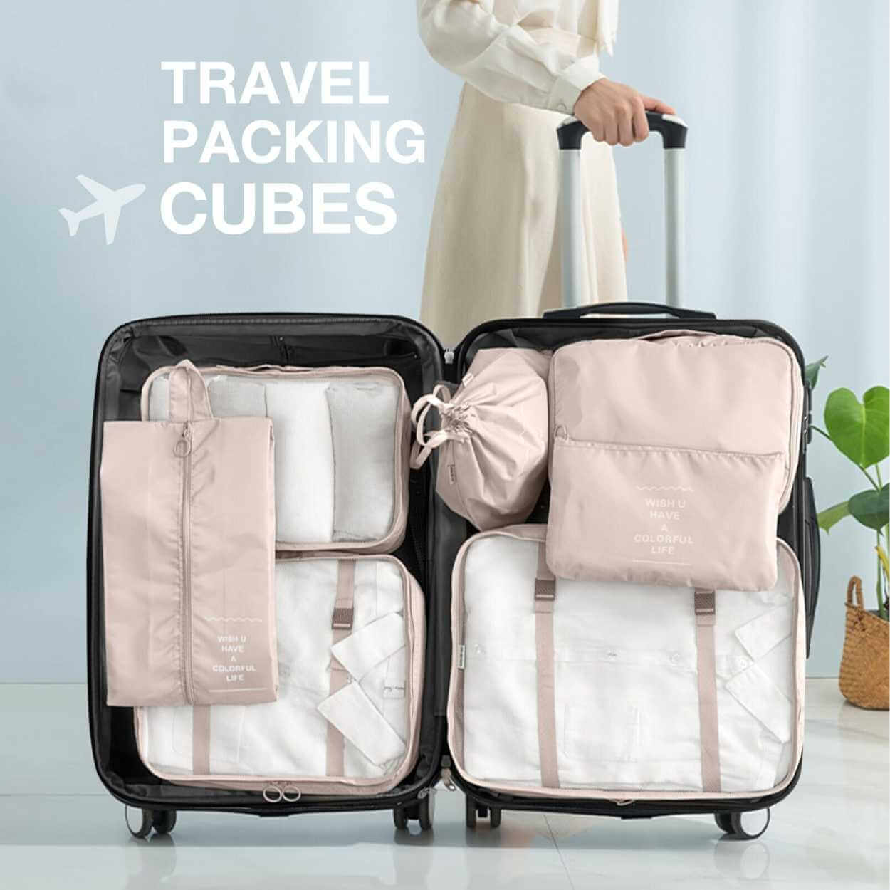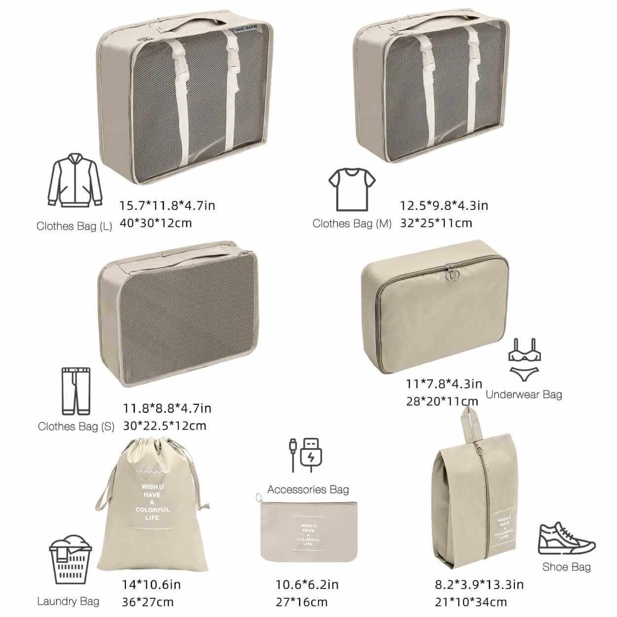 Reseorganiserare Packkuber till Resväska 7st Väskinsatser Beige